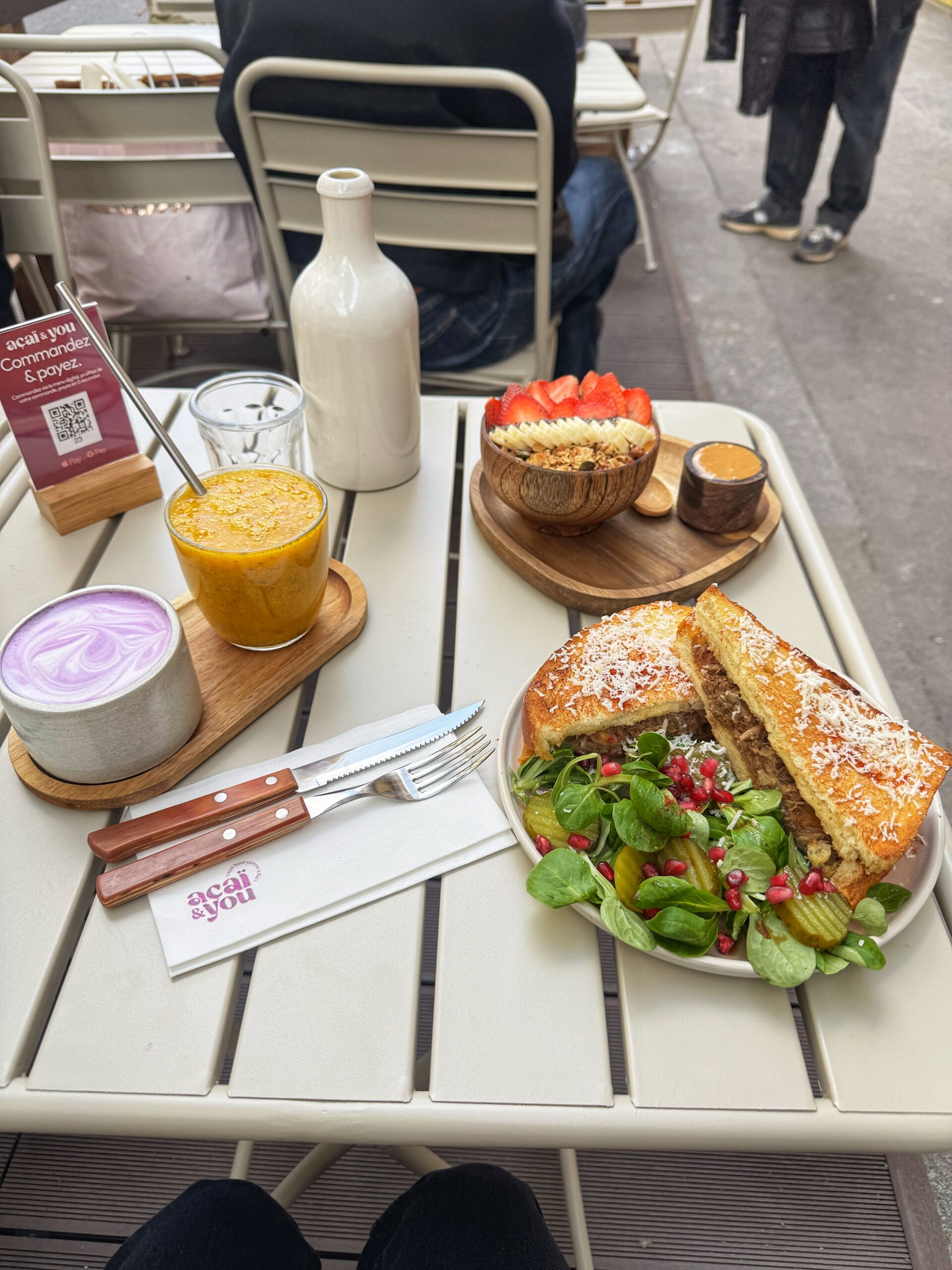 Bienvenue chez Acai and You pour un brunch ultra vitaminé et ensoleillé aux inspirations brésiliennes, où la baie d’açaï est à l’honneur. Cette baie riche en nutriments, qui pousse en Amazonie, se retrouve dans leur açaï bowl signature, proposé aussi bien dans le brunch qu’à la carte. Au menu, tu as le choix entre un brunch à la carte ou une formule complète : un plat salé, un açaï bowl, une boisson chaude et un smoothie.